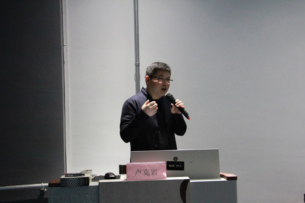 讲座中,卢克岩详细的从何为设计、一个设计师的自我修养、自身设计之路及设计如何安身立命这四个方面入手,探讨了中国当代设计发展。他讲到,设计是把计划、规划、设想通过某种形式传达出来,带给人们美的享受与实用价值的高超艺术。他认为优良正确的职业道德、理想科学的方法、事无巨细的实干精神和永不言弃的毅力,以及必要的机遇是取得成功不可缺少的因素。卢克岩结合自身的设计之路,提出“朴拙厚重,儒雅中正”的设计主张,台下的同学们听的津津有味,深感受益。随后,他向同学们讲解了现今中国设计发展的水平、风向,并对设计界过分追随国际潮流,“心中装满全世界,唯独没有他自己”的这一现象表示了遗憾,提醒同学们设计必须要建立本土风格,再去吸取外来经验。