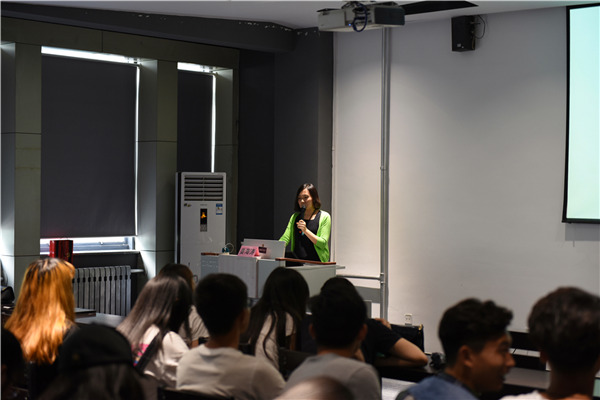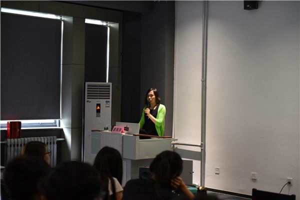 姜海涛为在场同学播放了图书制作的视频,阐述了态度与技术结合的重要性。一本成功的图书,应具有形态与内容一致、艺术性与功能性一致、艺术性与读者需求一致的特性。她向同学们分享了大量书籍设计的个人经验,展示了自己的设计理念。