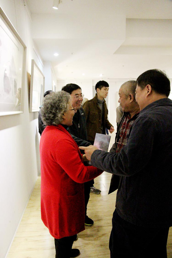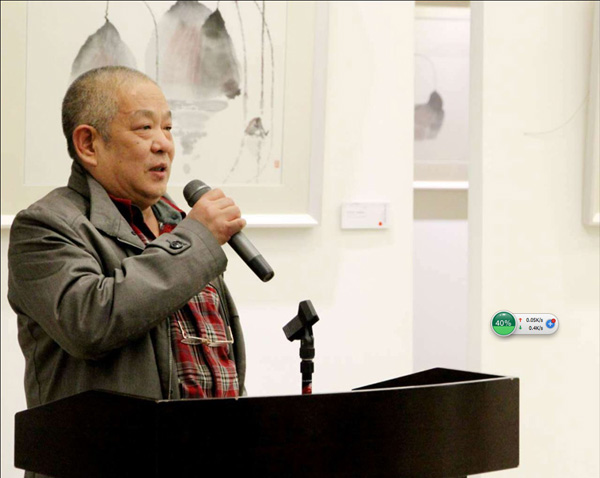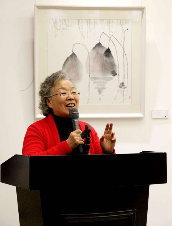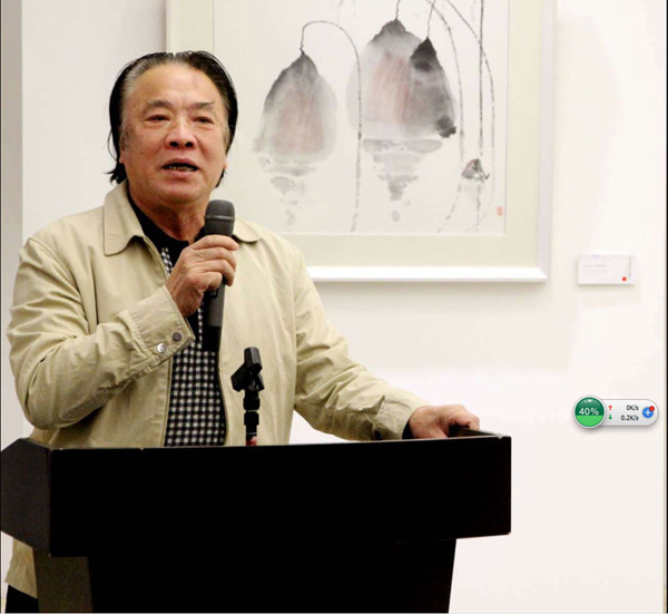 张志民在开幕式上致辞。他首先代表山东艺术学院和山东美术家协会对画展的开幕表示衷心的祝贺!他指出,李百钧教授是山东艺术学院设计系的创建者之一。在学术上的精湛造诣和深入浅出、谆谆善诱的教学方法,使她的学生们受益匪浅。艰苦奋斗,发愤图强,淡泊自守,宁静致远,这是李百钧那代人共同的思想风貌和行为准则。正是这些,深深影响着她日后的新年画和装饰绘画的创作,影响着她对民间美术的关注与执着,也造就了李老师的艺术成长之路。她坚持弘扬中国传统艺术,早期对山东年画的研究传承和发展创新,在全国都有很大的影响,对山东美术教育做出了很大的贡献。李百钧教授退休后,绘画风格又发生了改变,她画的荷花冰清玉洁,画面非常超脱,还带有很多时代的气息韵味。祝愿李老师艺术青春永驻!
