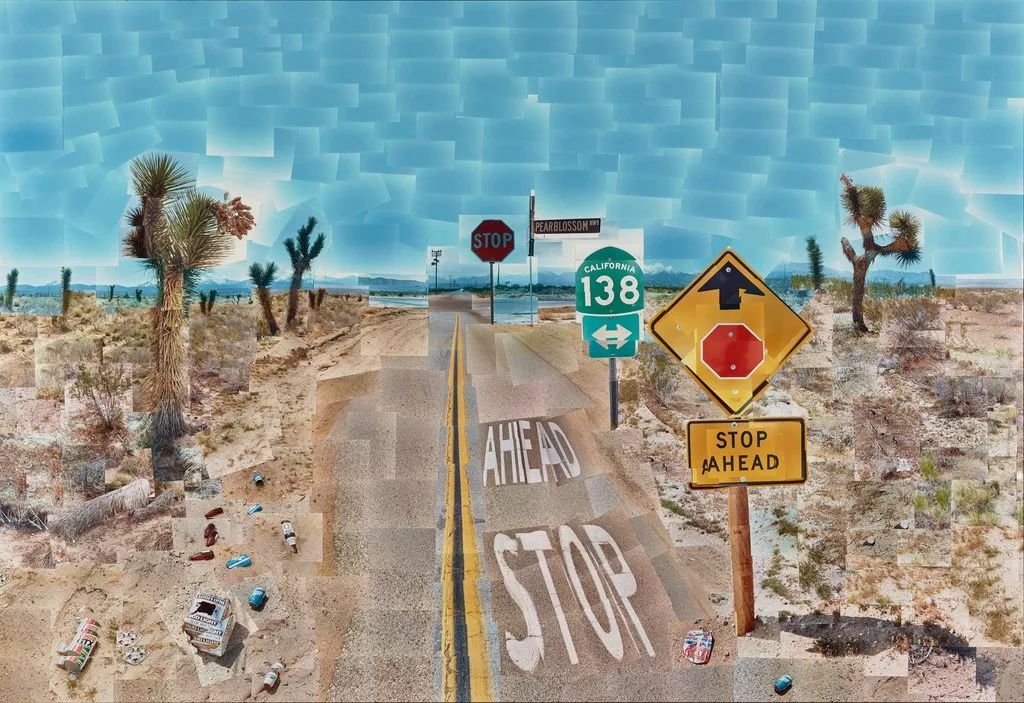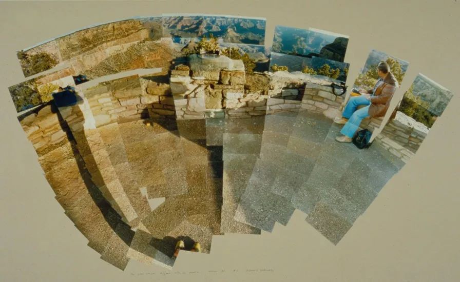 霍克尼先是用宝丽来相机拍摄出所摄对象的不同局部,然后将之组合在一起,由于角度、光线、时间等因素的差异,这个由多个局部拼合在一起的图像呈现出重叠、交错的效果,犹如立体主义绘画将一个场景中的形象分割成角度各异的构成。