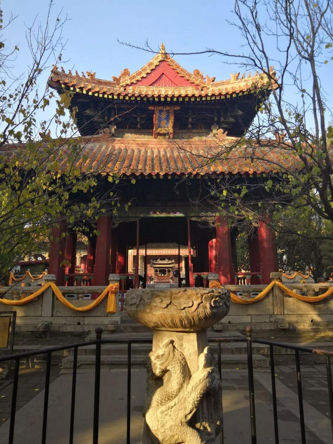 刚刚到达曲阜,师生们按耐不住激动的心情,共同参观了曲阜三孔。山东曲阜的“三孔”——孔庙、孔府、孔林驰名中外,它是我国思想家、教育家、儒家创始人孔子的故乡。这里有丰厚的文化积淀、悠久历史、宏大规模、丰富文物珍藏,以及科学艺术价值值得我们去探索、领悟、学习。殿结构简洁整齐,重檐飞翘,雕梁画栋,金碧辉煌,饰以云龙图案,祥云缭绕;深浮雕龙柱两两相对,各具变化。无一雷同,造型优美生动,雕刻玲珑剔透,刀法刚劲有力,龙姿栩栩如生。这里的一砖一瓦体现出儒学的韵味,历史的传承遗留下无数的艺术瑰宝。