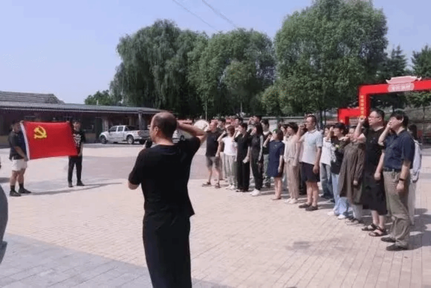在初心广场上,全体党员肃立在党旗前,庄严的举起右手,重温入党誓词。同志们目光坚定、神情肃穆,面对鲜红的党旗,在铿锵有力的誓言中,表达了对党的忠诚和对人民事业的坚定信念,更加坚定了理想信念,进一步强化了对党忠诚、全心全意为人民服务的使命担当。