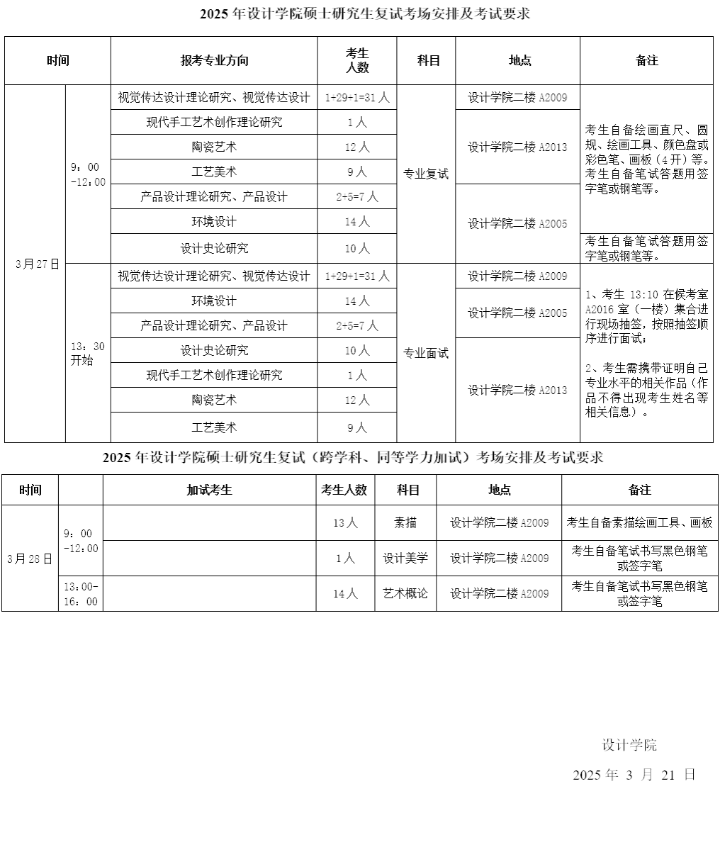 2025年设计学院硕士研究生复试考场安排及考试要求