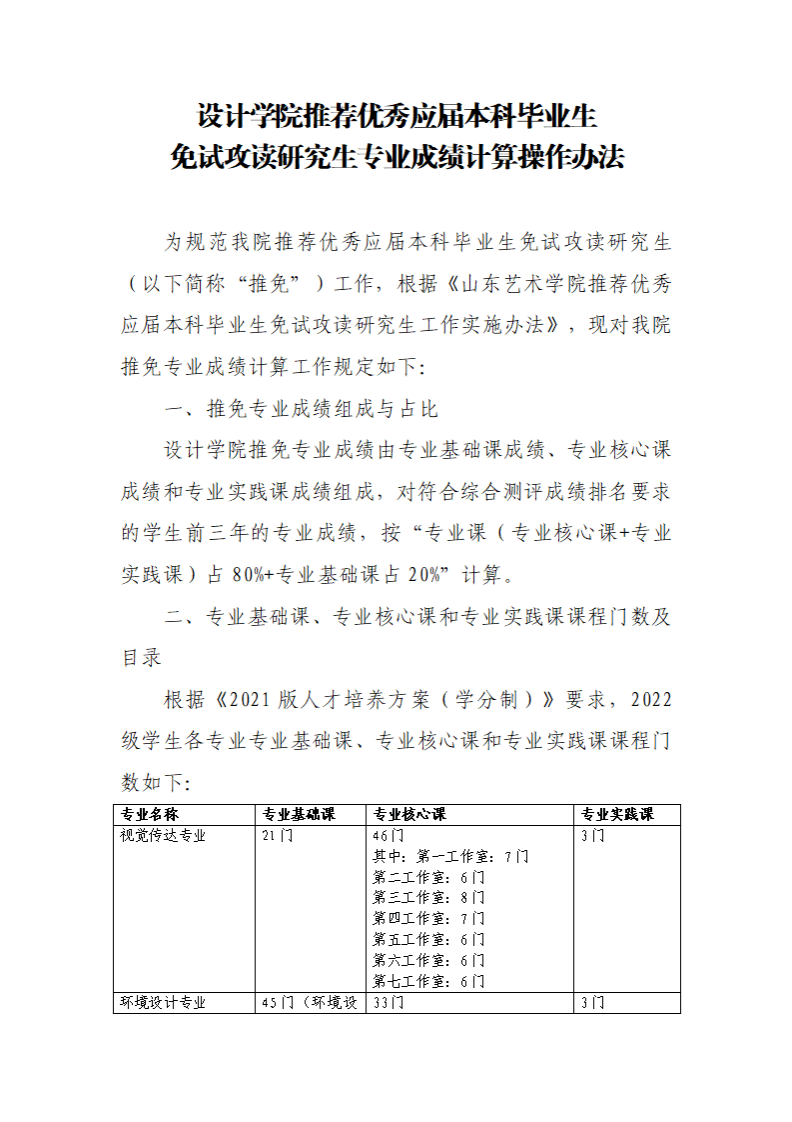 设计学院2026年推荐优秀应届本科毕业生免试攻读研究生专业成绩计算办法