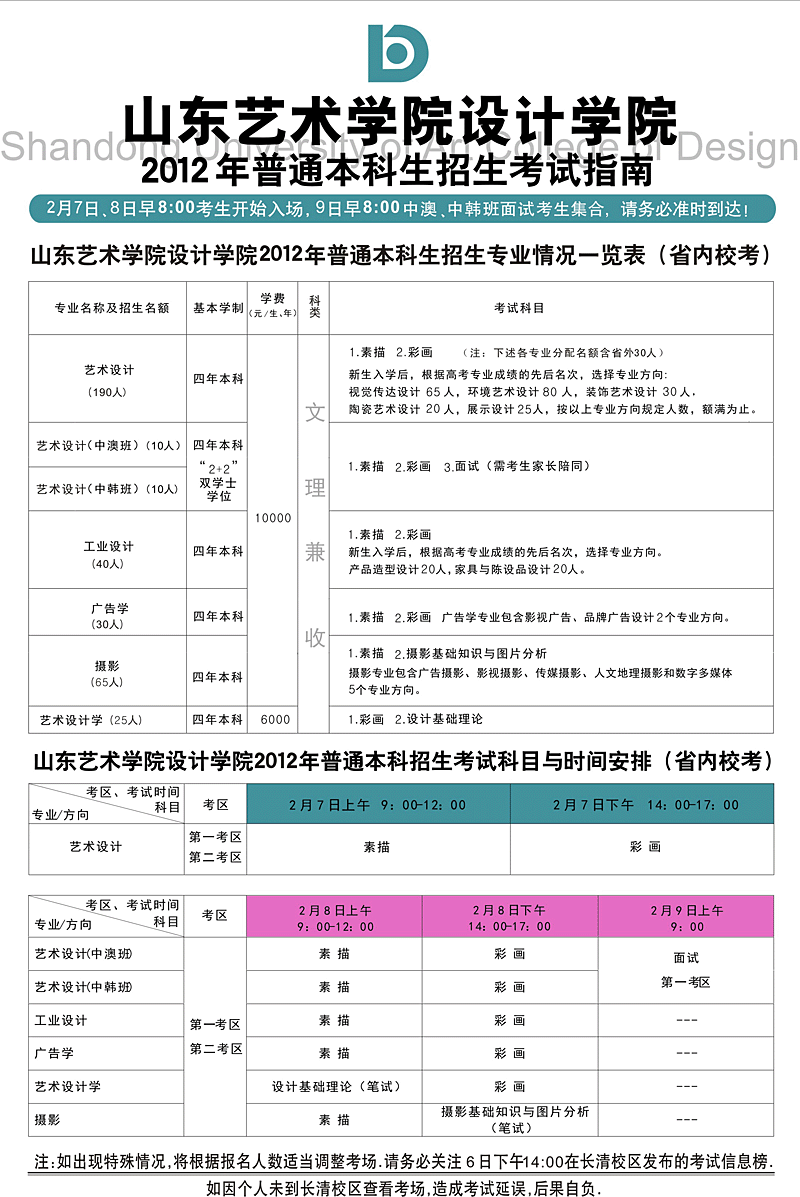 山东艺术学院设计学院2012年普通本科招生考试指南