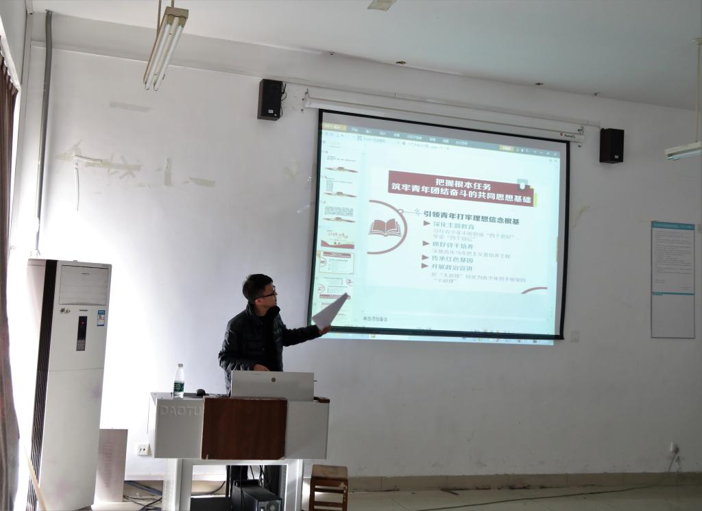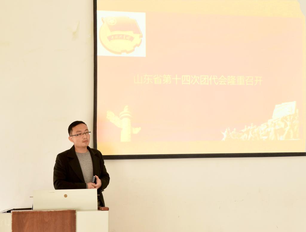 紧接着刘奎老师向团支部书记讲述了山东省第十四次团代会的主题、使命以及深化共青团改革的方针,让团支部书记认识到如何深入学习贯彻党的十九大精神和省十四次团代会精神,如何团结带领广大团员不忘初心跟党走,牢记使命建新功。