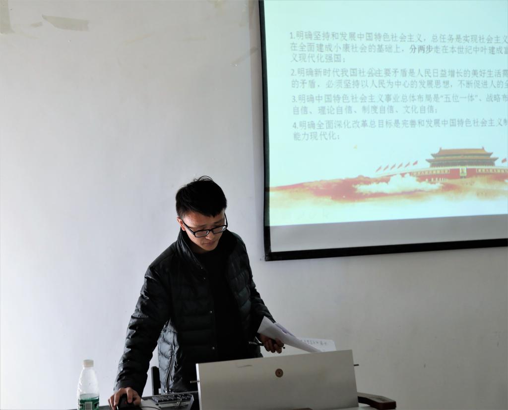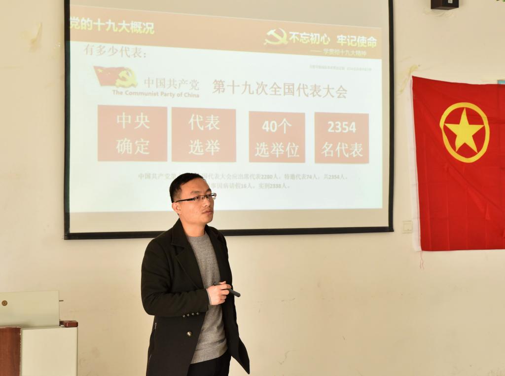 刘奎老师以“不忘初心、牢记使命”为主题,带领团支部书记从党的十九大概况、十九大报告主题以及如何实现中华民族伟大复兴等方面进行了详细的学习。将党的十九大精神与团员实际特点和实际案例相结合,剖析了十九大精神,使在场团支部书记深刻领会,要积极努力学习十九大精神并将个人发展融入到为实现中华民族伟大复兴的中国梦中去,不忘初心、牢记使命,勇于担当。