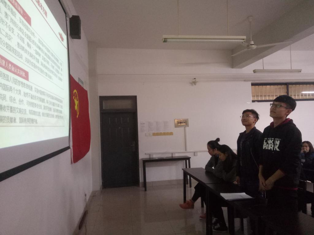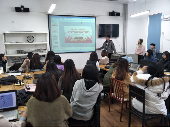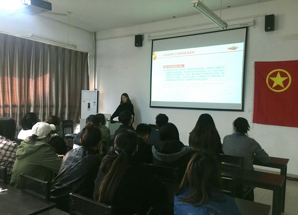 2015、2014级团支部通过团支部书记进行宣讲,共同学习了习近平总书记十九大报告的四十个新提法新举措,并观看了十九大的视频资料。