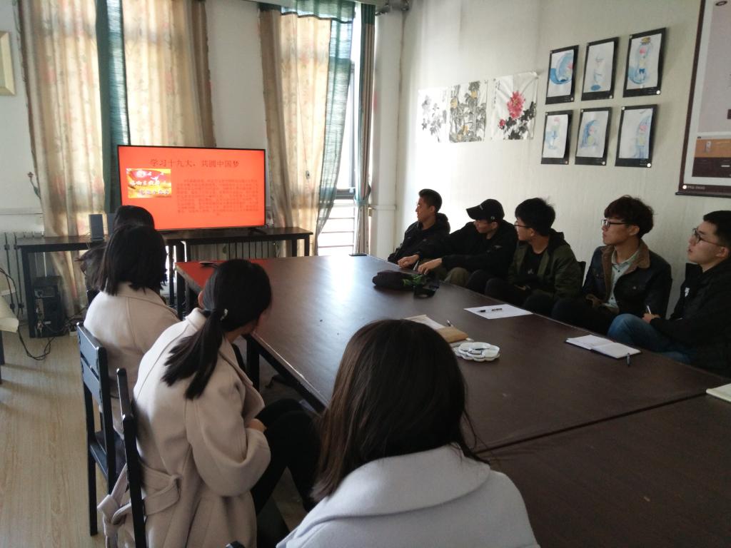 2016级团支部在开展主题团日活动时,辅导员刘奎老师参与其中,他同团员青年强调:“作为一名共青团员,一定要认真学习,深入贯彻党的十九大精神,不断提高自身思想认识和理论水平,把思想和行动统一到贯彻十九大精神上来,为实现中华民族伟大复兴的中国梦,脚踏实地,兢兢业业,奉献青春年华”