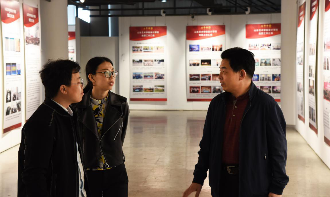4月26日上午,“喜迎校庆六十年 立德树人齐奋进”山东艺术学院设计学院党政工作汇报展在长清校区美术馆正式开展。校党委书记马东骅、纪委书记兰绍彤在相关职能部门负责人的陪同下,现场观摩了我院的党政工作汇报展。部分二级学院和教学单位的负责人也陆续前来观展。