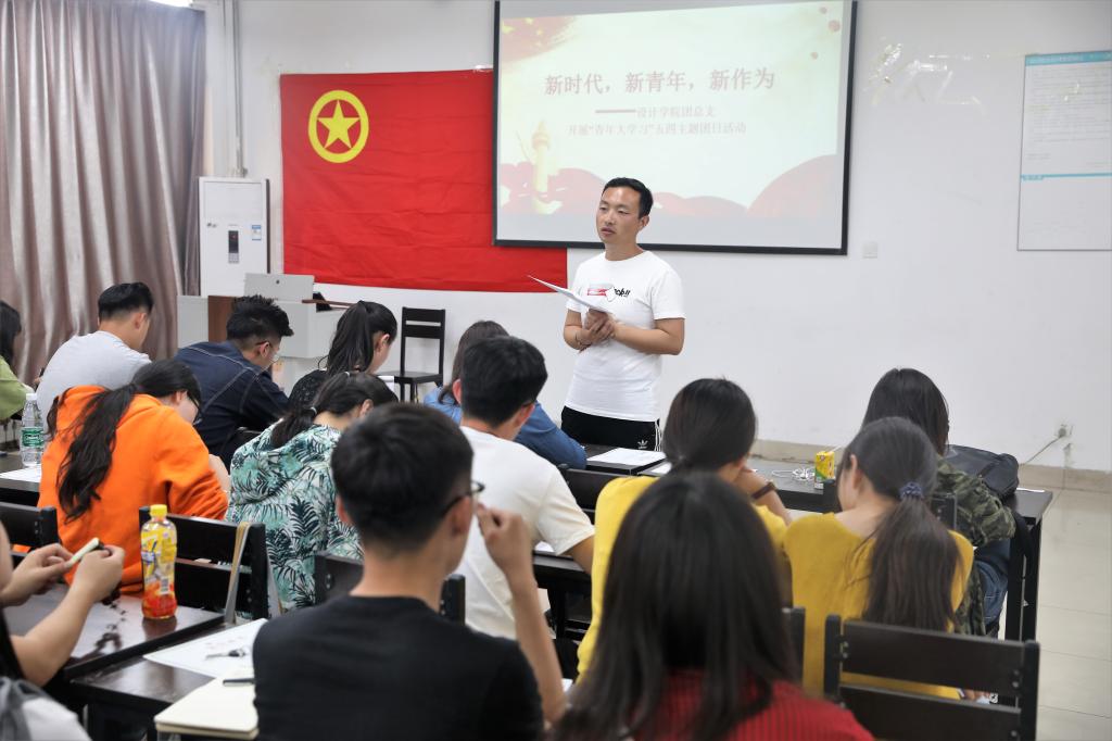 为组织引导广大青年深入学习宣传贯彻习近平新时代中国特色社会主义思想和党的十九大精神,设计学院于5月4日在a201教室开展了以“新时代,新青年,新作为”为主题的“青年大学习”五四主题团日活动。本次团日活动由团总支刘奎老师主讲,2017年度全体优秀团干部、优秀团员以及全体团支部书记100余人参与。