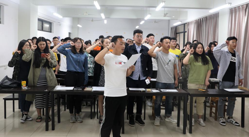 最后,在刘奎老师的带领下,全体参会团员青年齐声歌唱了团歌并重温了入团誓词。通过本次“青年大学习”五四主题团日活动,让在场的团员青年更加深刻地理解了习近平新时代中国特色社会主义思想,意识到了作为新青年肩负的中国梦使命和责任,从而树立起了坚定的信念,决心为中国梦建设贡献自己的一份力量。