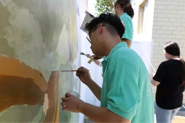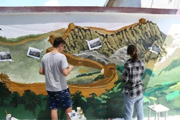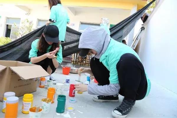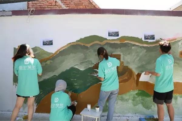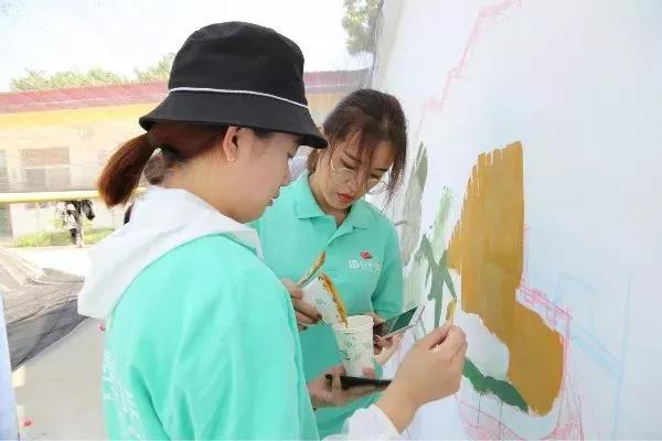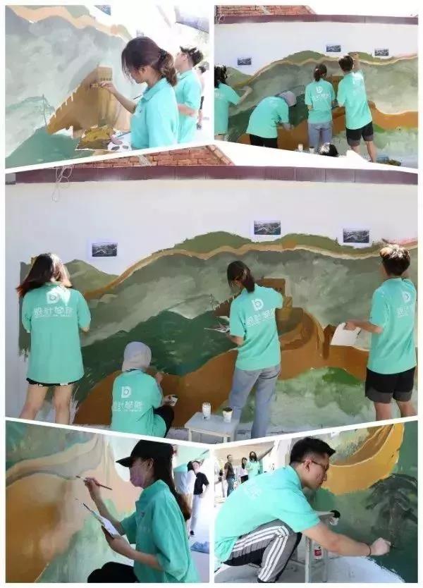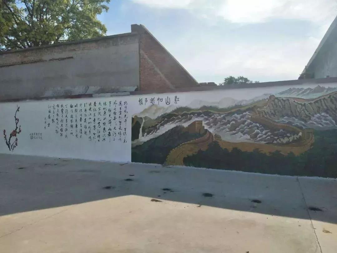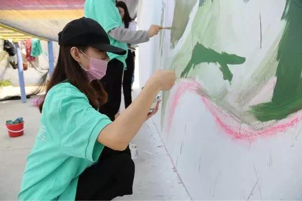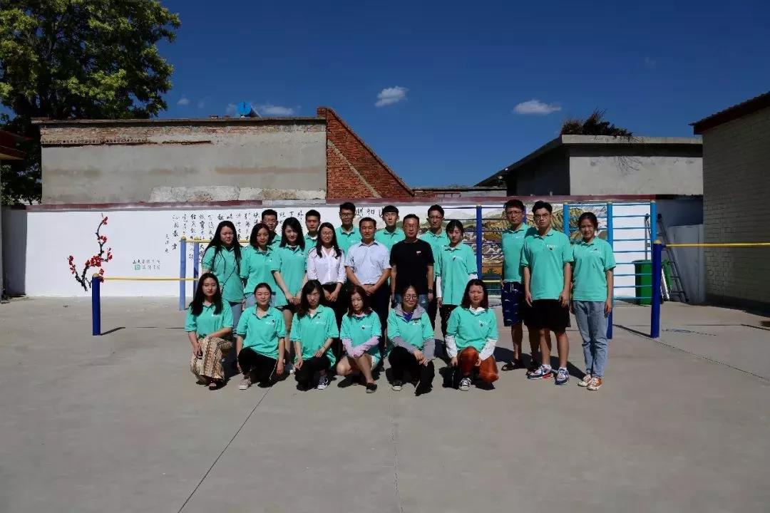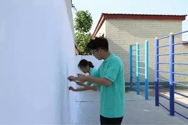 烈日当头,汗水浸湿了同学们的衣衫,他们毫不退却,以积极的行动发挥着模范带头作用,脚踏实地为此次活动贡献自己的一份力量。在同学们的共同努力下,圆满完成了本次墙绘的绘制工作。截稿时,正值崮头小学的学生们下课,他们涌出教室,异口同声的喊道:“哇!好美的图画!”虽然只是简单的一句话,却包含了孩子们对我们的认可和肯定,同学们心中的喜悦也油然而生。