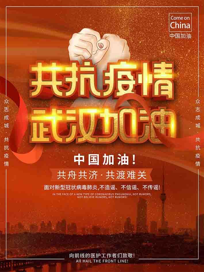 疫情的突然暴发使大家更加的众志成城,全国各地增援武汉,无数的前线医疗队伍奋不顾身的冲到最危险的地方,我相信,在我们全国人民的齐心协力下一定会共度难关,为武汉祈福!为中国加油!
