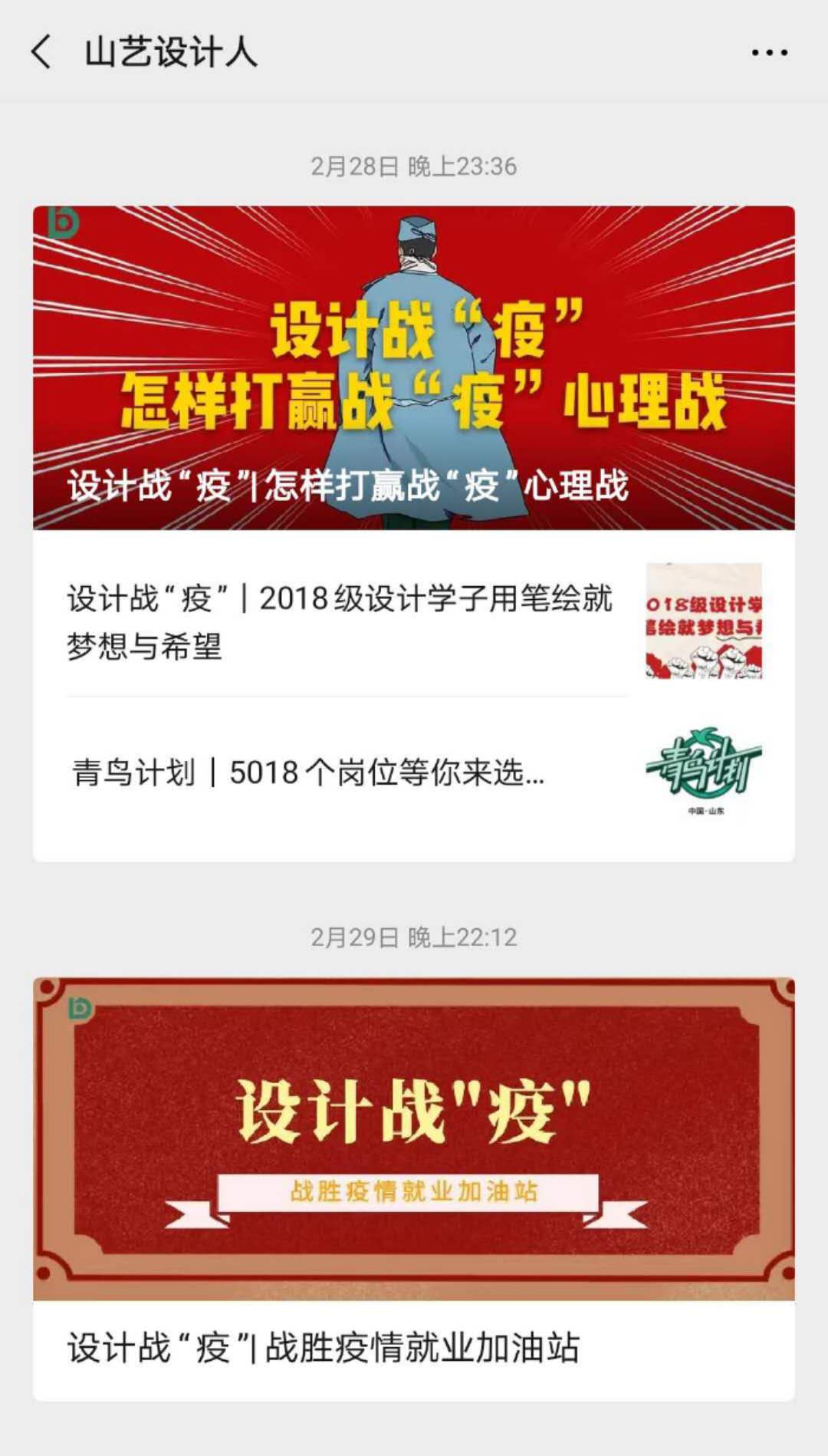 在疫情肆虐的日子里,设计学院的师生们凝聚设计的力量,用自己所擅长的专业,弘扬疫情防控正能量,以此来鼓舞斗志,传播科学,同心聚力,共抗疫情,通过一件件饱含深情的设计作品为抗击疫情带来更坚实的信念与力量,表达出为中国加油、为武汉加油的真情实感。创作作品先后被济南日报、齐鲁网、大众网等多家媒体报道,其中本科生范欣瑜的作品《请愿书》入选由团中央青年志愿者行动指导中心发起的艺术战“疫”志愿者行动优秀设计海报。