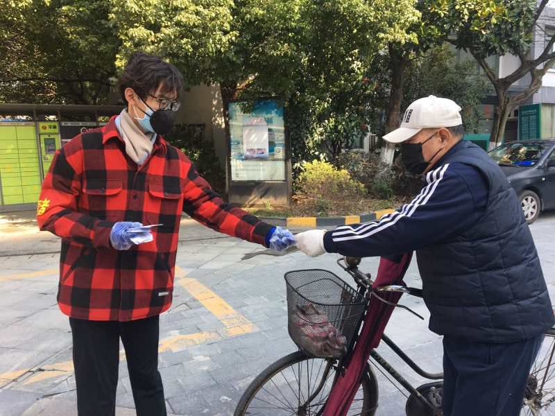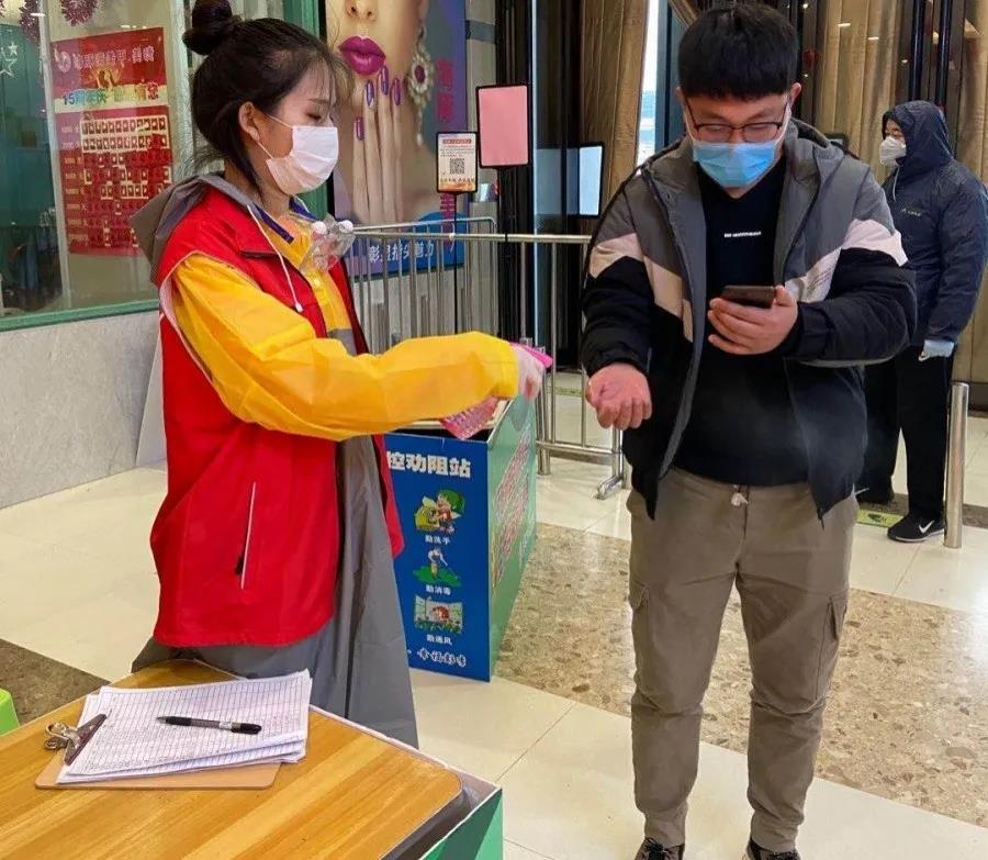 2018级本科生史旻扬、湛旭阳、宋佳琪在自己的家乡小区和商城积极报名志愿服务,在小区和商场入口查看证件、测量体温、做好记录、消毒包裹、分发通行证,并时刻叮嘱过往人员科学防疫的注意事项。