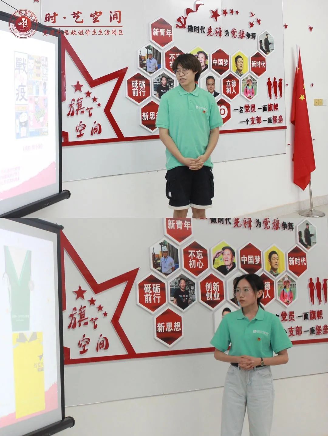 会上,“设计正青春”、“设计心青春”、“设计创青春”志愿服务团队的成员队中“旗·志青年”从不同角度分享了他们的战疫故事。