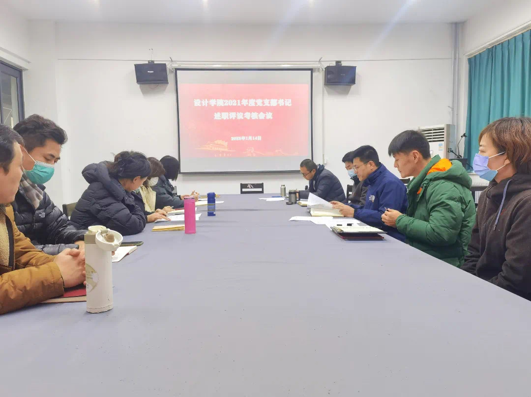1月14日上午,设计学院在教学楼A2016召开2021年度党支部书记现场述职评议会议,党委书记孔宪坤、副书记苏培然、各支部书记和委员参加会议。