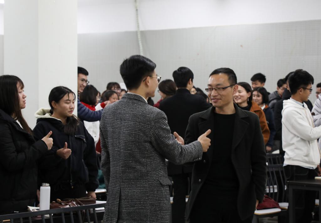 开课伊始,李老师通过介绍他的大学生活及个人经历中,告诫我们要敢于面对自己的缺点并及时做出适当的调整,做事要坚持,不要半途而废,要合理调整时间,处理好工作与学习的关系。随后李老师通过一个小互动告诉我们:作为一名学生干部,要时刻明白工作的轻重缓急,要学会权衡利弊,达到学生工作的“双赢”。