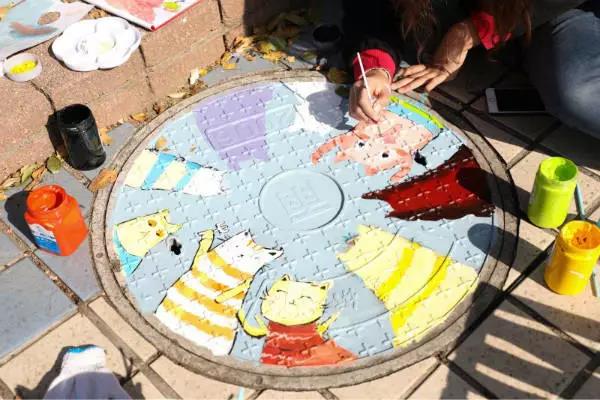 这里有可爱的大熊猫,它那圆鼓鼓的形象和井盖很配哦。