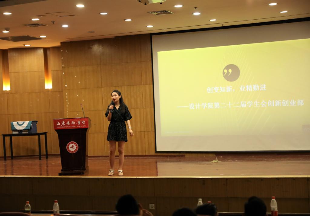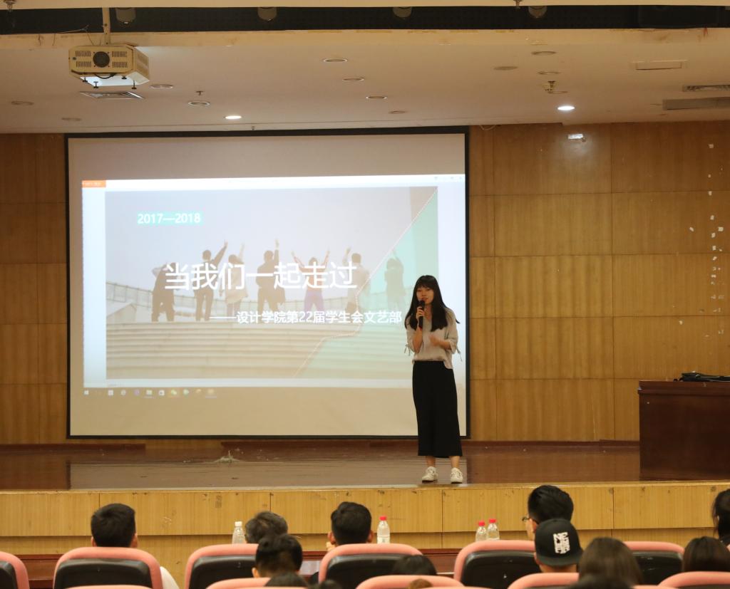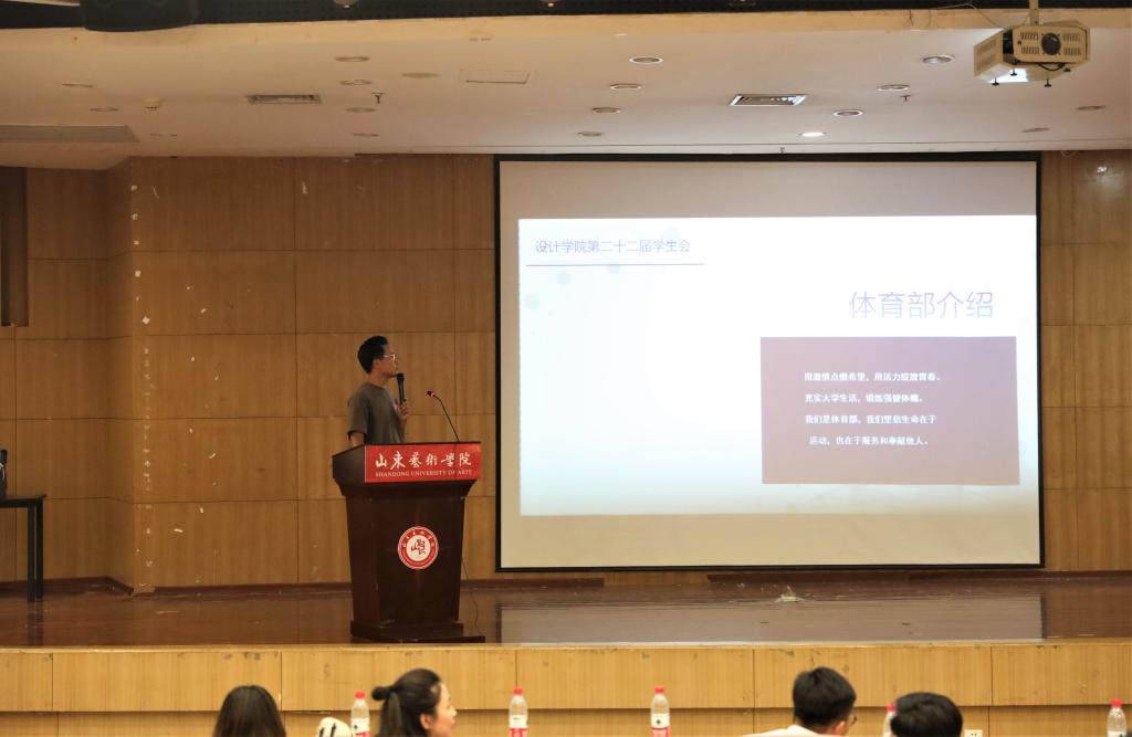 大会报告由设计学院第二十二届学生会主席徐嘉泽同学发表。徐嘉泽首先向全体学生会成员们表示感谢,感谢他们在这一年在学生会所付出的辛勤努力和贡献。然后就这一年来学生会所举办的大大小小的活动及成果作出报告,在报告的最后再次向学生会全体成员的辛劳表示了深切的感谢。