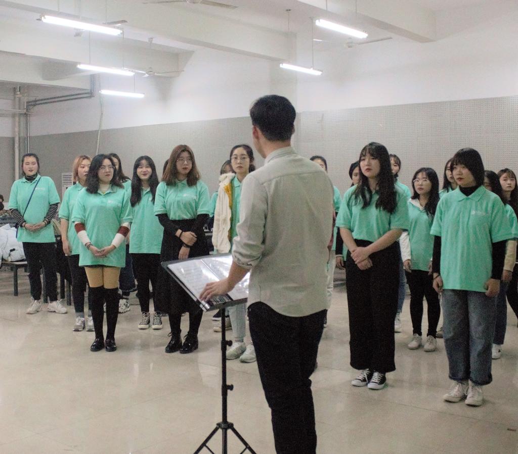 排练时,同学们不畏辛苦,没有丝毫懈怠,一遍遍的练习,直到那动人心魄的歌声伴随着青春的活力与爱国的热情进入每个人的心中。