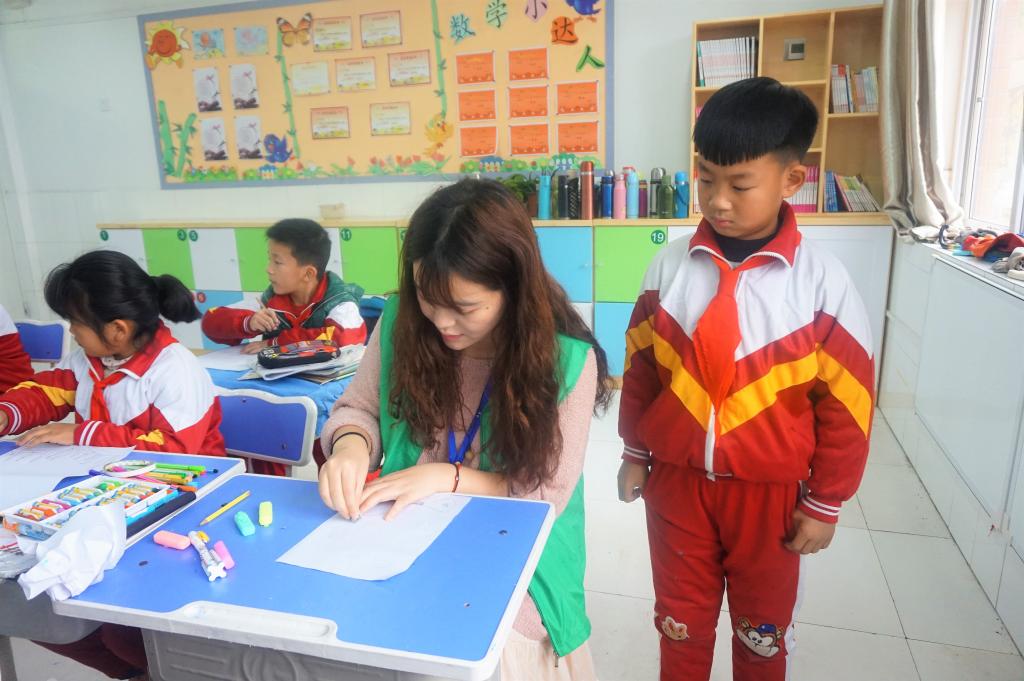 踏入校门的那一刻,一股暖流迎面袭来。瞧,那一群可爱的孩子们正在朝志愿者身上扑来,凝望着孩子稚嫩的脸庞;聆听着孩子银铃般的声音,志愿者心中早已澎湃起来,准备与孩子一起去领悟艺术的魅力。