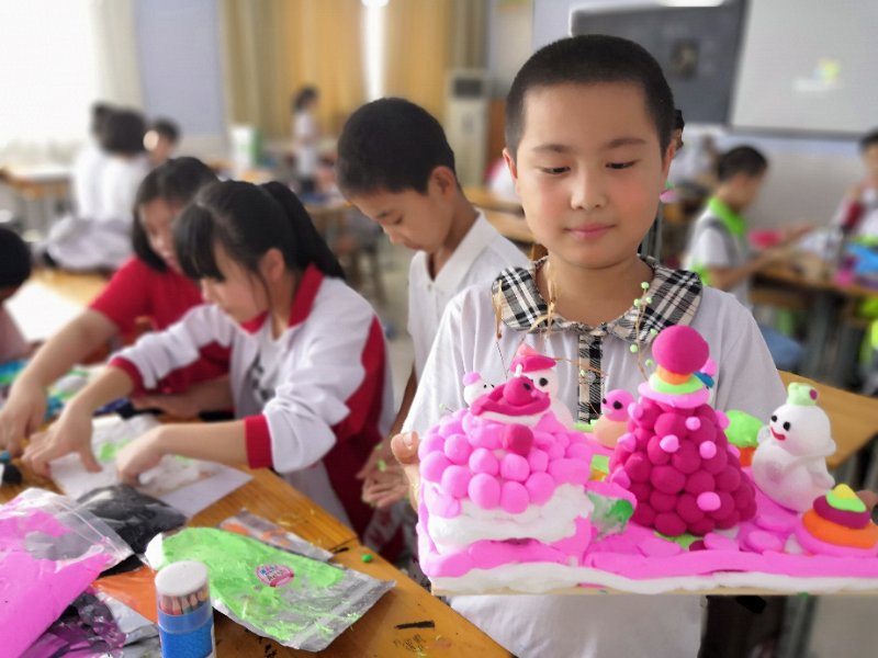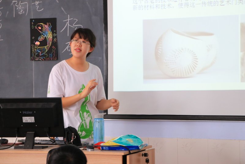 2016级陶瓷艺术设计专业杨硕,今年是她第二次参与艾东公益夏令营,这次给孩子们带来的是陶艺课程,首先,带领孩子们欣赏中外优秀陶艺作品,分析中外作品的不同之处,让孩子们探索,了解基本成型方法,然后让孩子们用彩泥合作完成一件作品。在完成作品的同时也懂得了合作的力量。立足于本专业,为马耳山的孩子们打开了另一扇窗户。