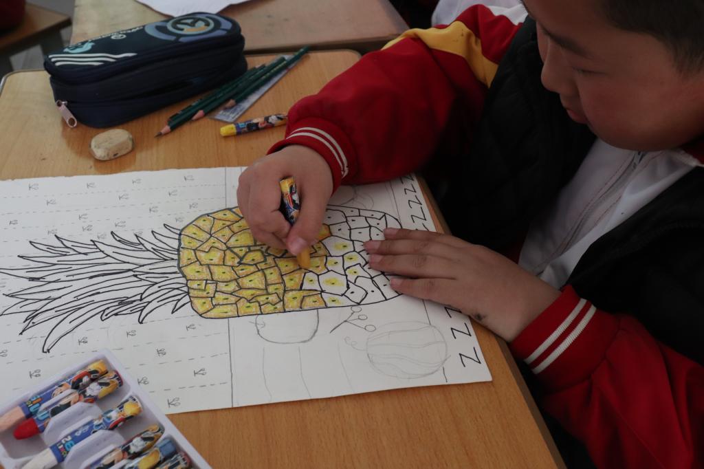香甜的水果,小朋友们的最爱。当一个个水果聚集到一起,那岂不是将爱的味道聚集到了一起。志愿者刘晓敏带领五年级小朋友们画了《水果聚会》,培养了小朋友们的创新能力和认识感知世界的能力。