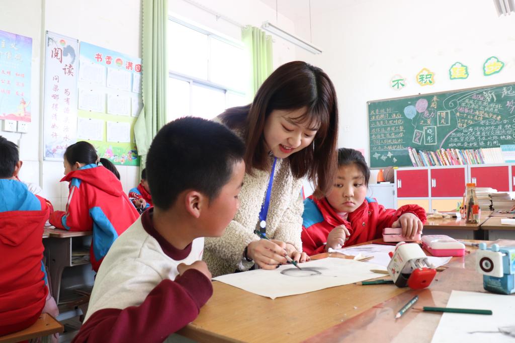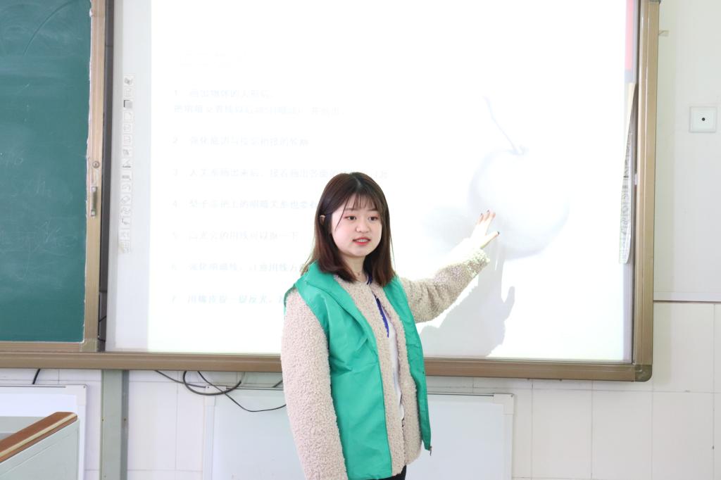 熟透了的梨子,有的像小黄灯笼,有的像灯泡,挂满枝头,那茂密的绿叶组成了一把小花伞,真是惹人喜爱。志愿者刘映遥带领六年级小朋友画出了香甜的梨,帮助小朋友们在学习生活中找到乐趣。