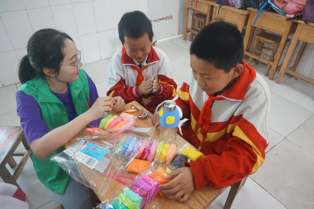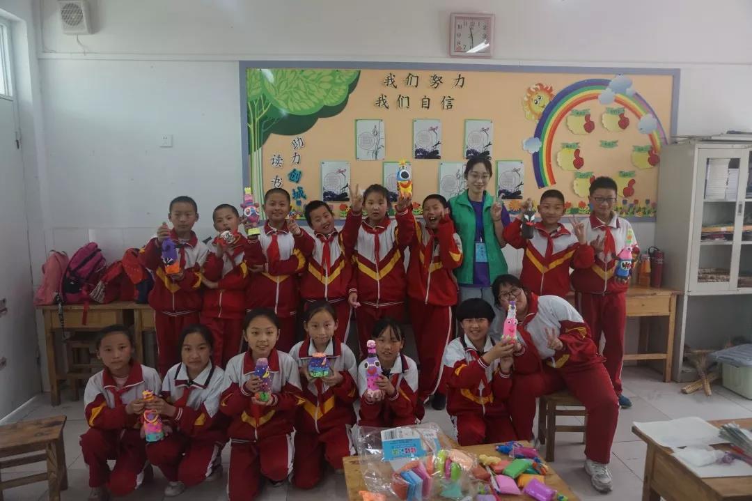 四年级的孩子们在志愿者黄鑫的带领下,了解了许多大大小小的瓶子,并且通过超轻的黏土亲手制作自己心中的小瓶子,提高了孩子们的动手能力。