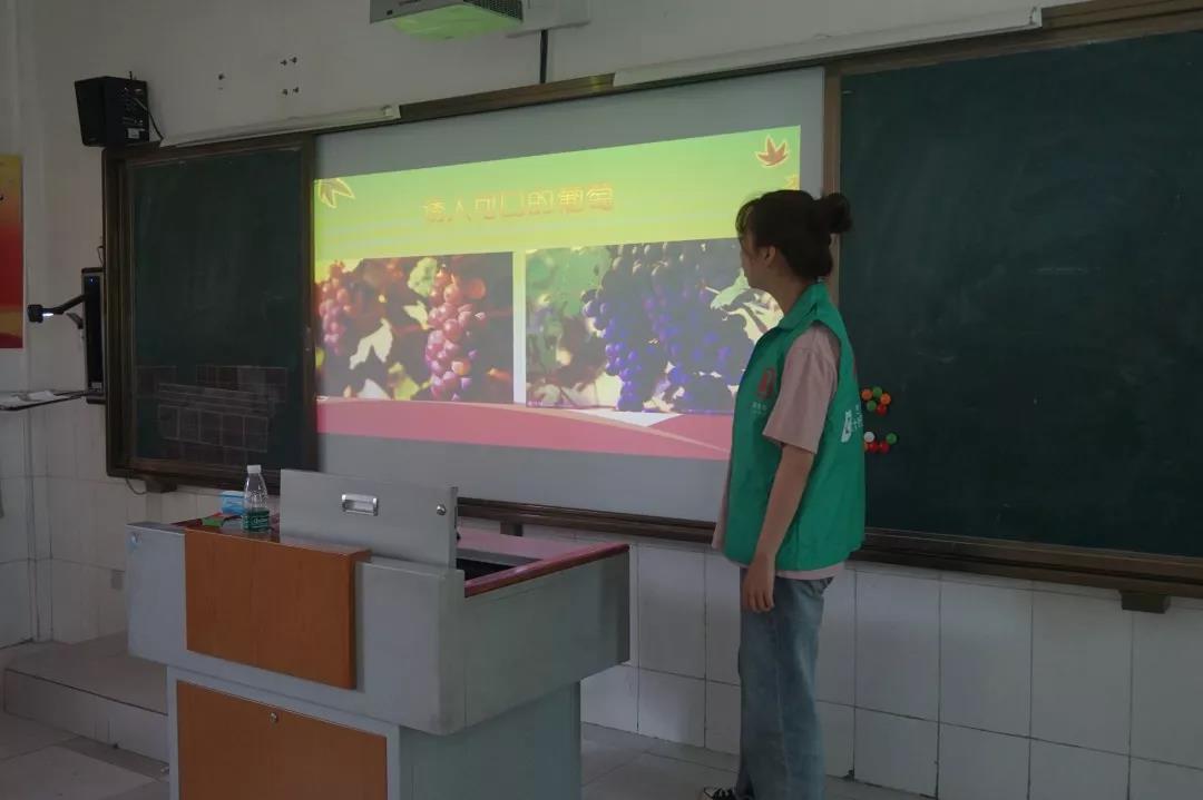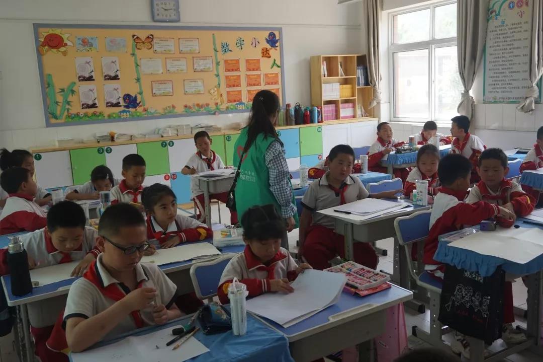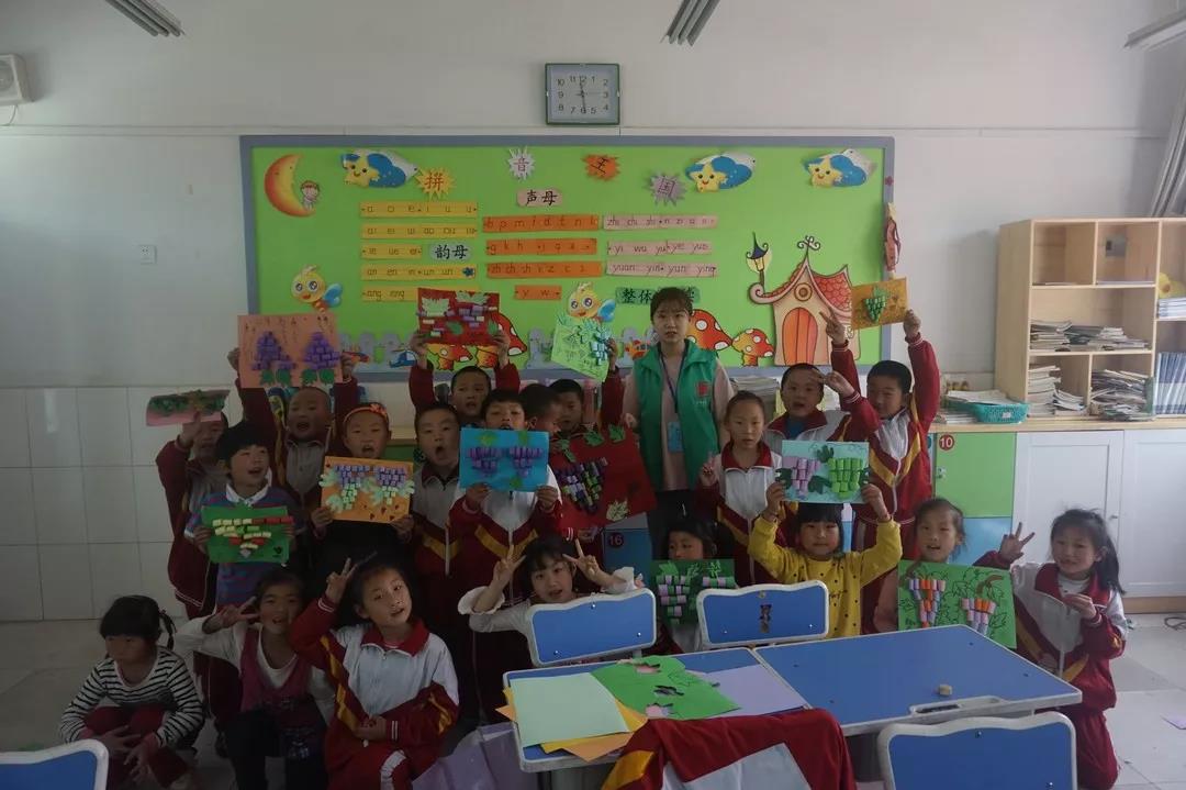 在一年级的课堂上,一群乖巧可爱的孩子们正在志愿者张丁芳细心指导下,动手制作一串串简单有趣的葡萄,为这炎热的夏天添加清凉,让一切烦躁的情绪慢慢稀释在酸酸甜甜的汁液中。