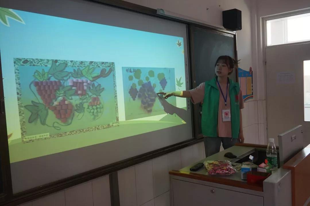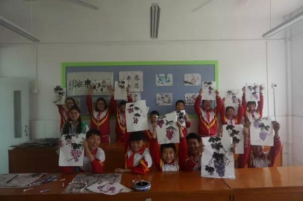 几千年来,中华民族创造了光辉灿烂的古代文化,国画就是我国传统艺术文化中一颗璀璨的明珠。快瞧,志愿者孙尹颖正在教导六年级二班的孩子们如何巧妙的运用手中的画笔,以及对颜料色彩的感知。不久,一串串精美的国画葡萄跃然纸上。