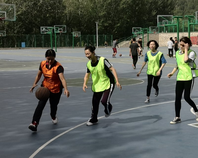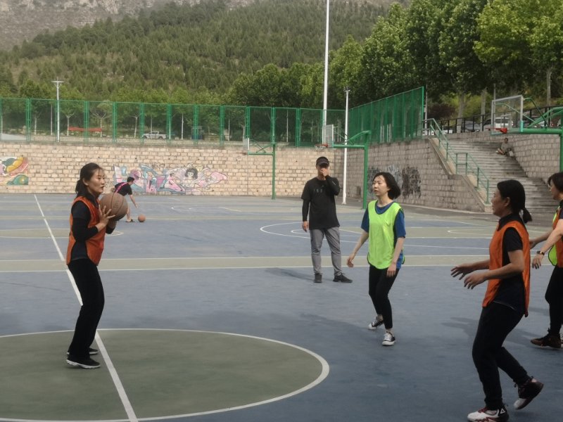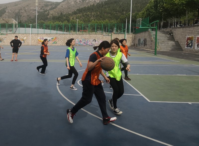 5月14号,云开雾散,渐渐放晴,原本还有些灰蒙蒙的天气也绽放出骄阳的光泽。下午三点,设计学院的老师们已经在篮球场上开始了赛前热身,今天的比赛是我院教职工女篮对战国交教职工女篮。