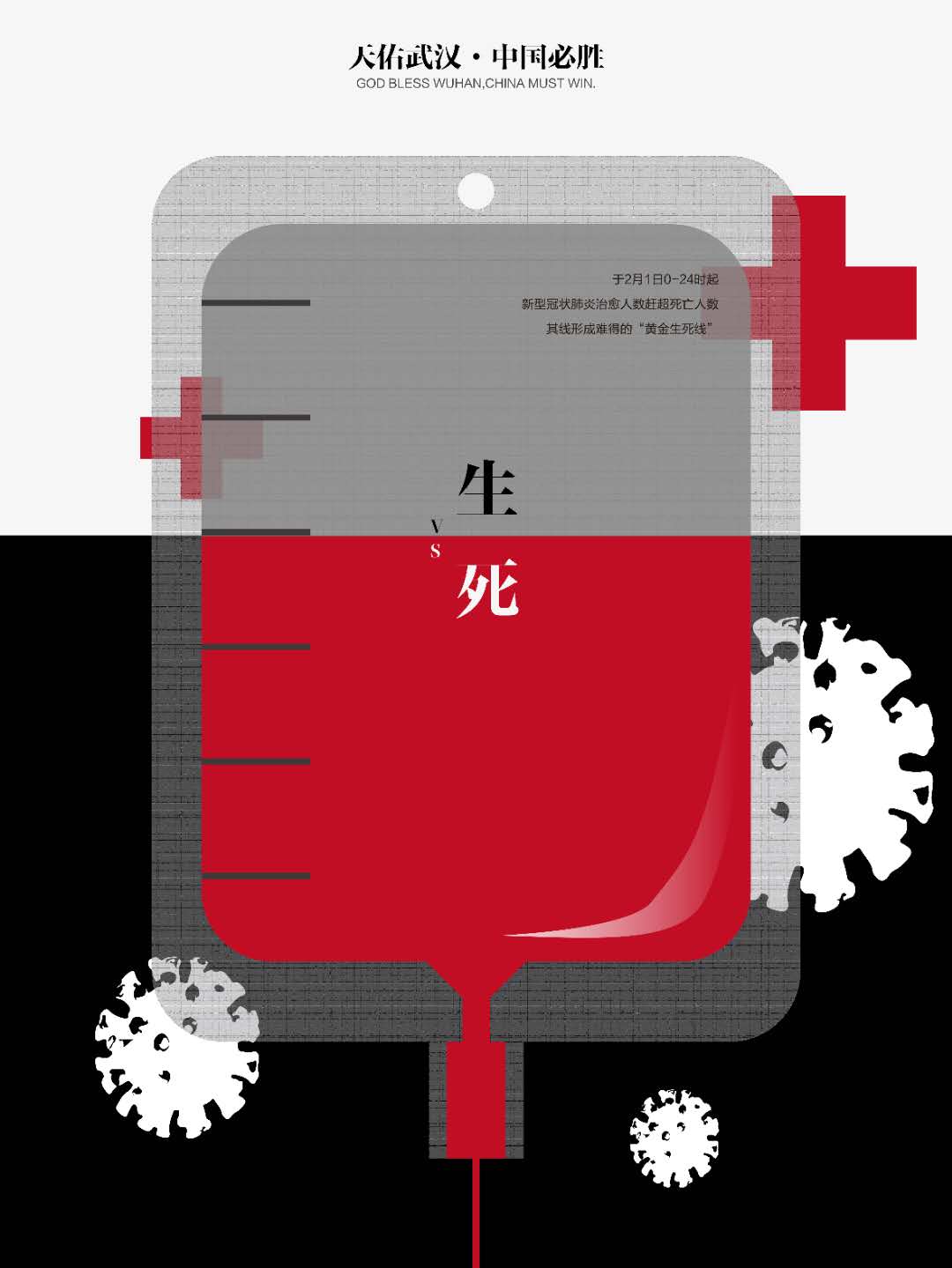 创作感想:采用了代表自由和生命的白色和代表垂暮的黑色,以吊瓶的形式预示着健康人数和患病人数,希望着未来的患病人数会越来越少直到清零。