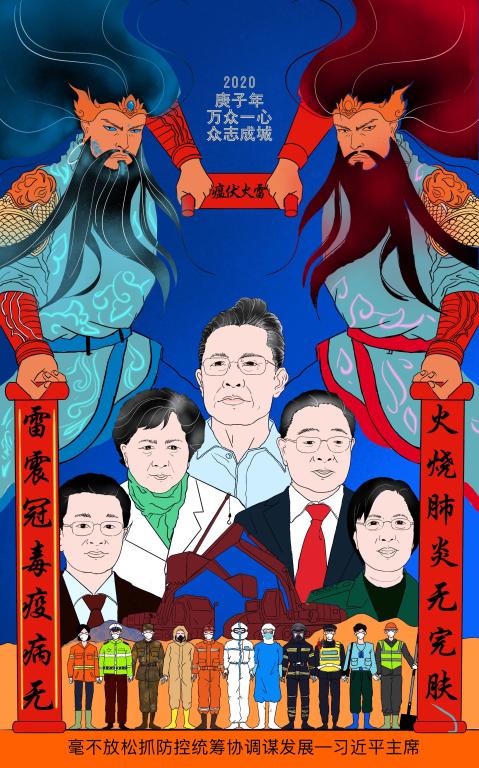 创作感想:火烧肺炎无完肤,雷震冠毒疫病无,只要我们众志成城万众一心,一定能够降伏病毒、战胜疫情。