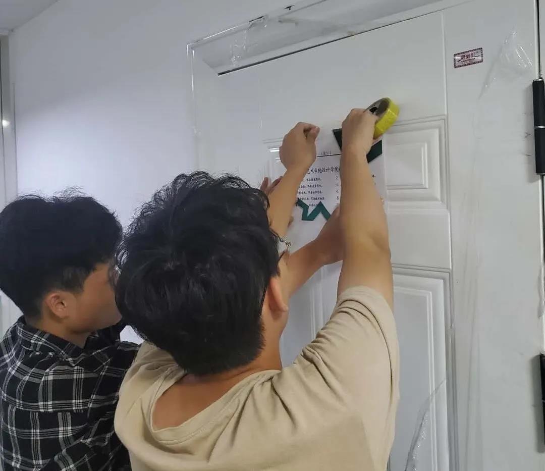 在萌新们到来之前,学院多次召开统筹协调会议,对各项工作进行统一部署,特别强调了新生宿舍安全整洁的重要性。为此,学院老师和青春志愿服务团队的同学们深入宿舍,检查每个宿舍的物品安全和损坏情况,同时为萌新们张贴专属的学院宿舍标识,对每个床铺进行了贴纸划分,方便萌新们认领床铺!平凡而又琐碎的工作,只为萌新们能在安全整洁的宿舍体验到如家般的温暖。