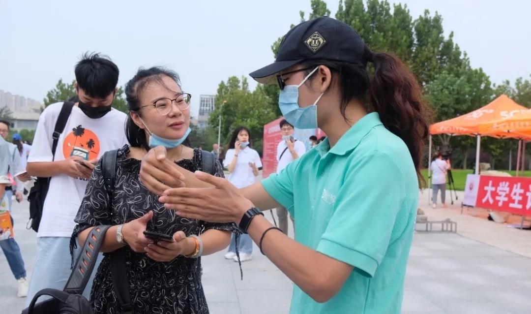 秋风吹开了同学们花般的笑颜,领导和老师们的关心无处不在。迎新期间,校园内随处可见一群身着“设计绿”志愿者的青春身影,他们为萌新们介绍报到流程、指引路线、运送行李,汗水湿透了衣衫,热情周到的服务让学生和家长忍不住的点赞,他们的笑脸构成了最美的风景线。